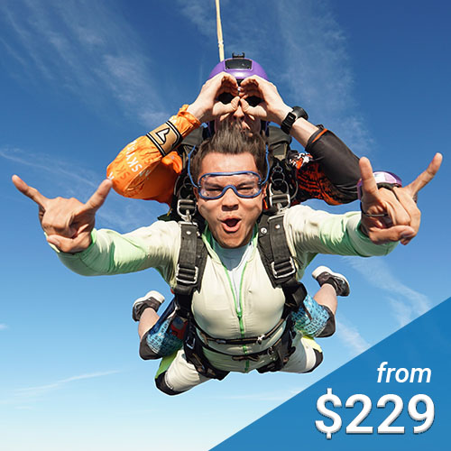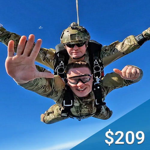 Book Now: Tandem Skydive Reservations Need to learn more before booking? New Purchase đ Individuals/Small Groups Deposits (Groups 5+) Returning Customer U.S. Military/Service Rates đ U.S. Military Rate Mil. Dependent/First Responder/Merchant Marine Book a Prepaid Skydive đ Redeem Tandem Jump Gift Certificate Book Raincheck/Prepaid $99 Jump 2 Special